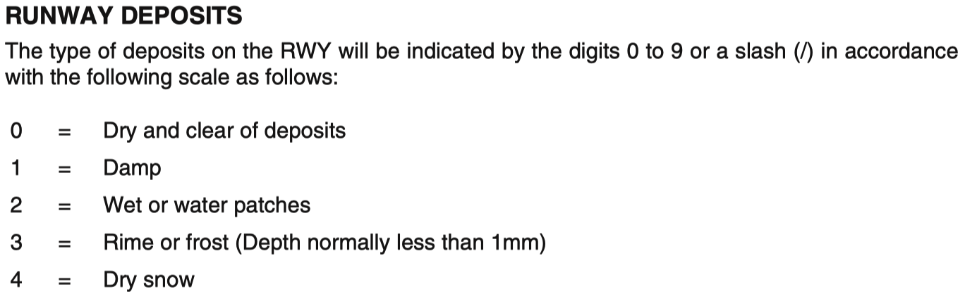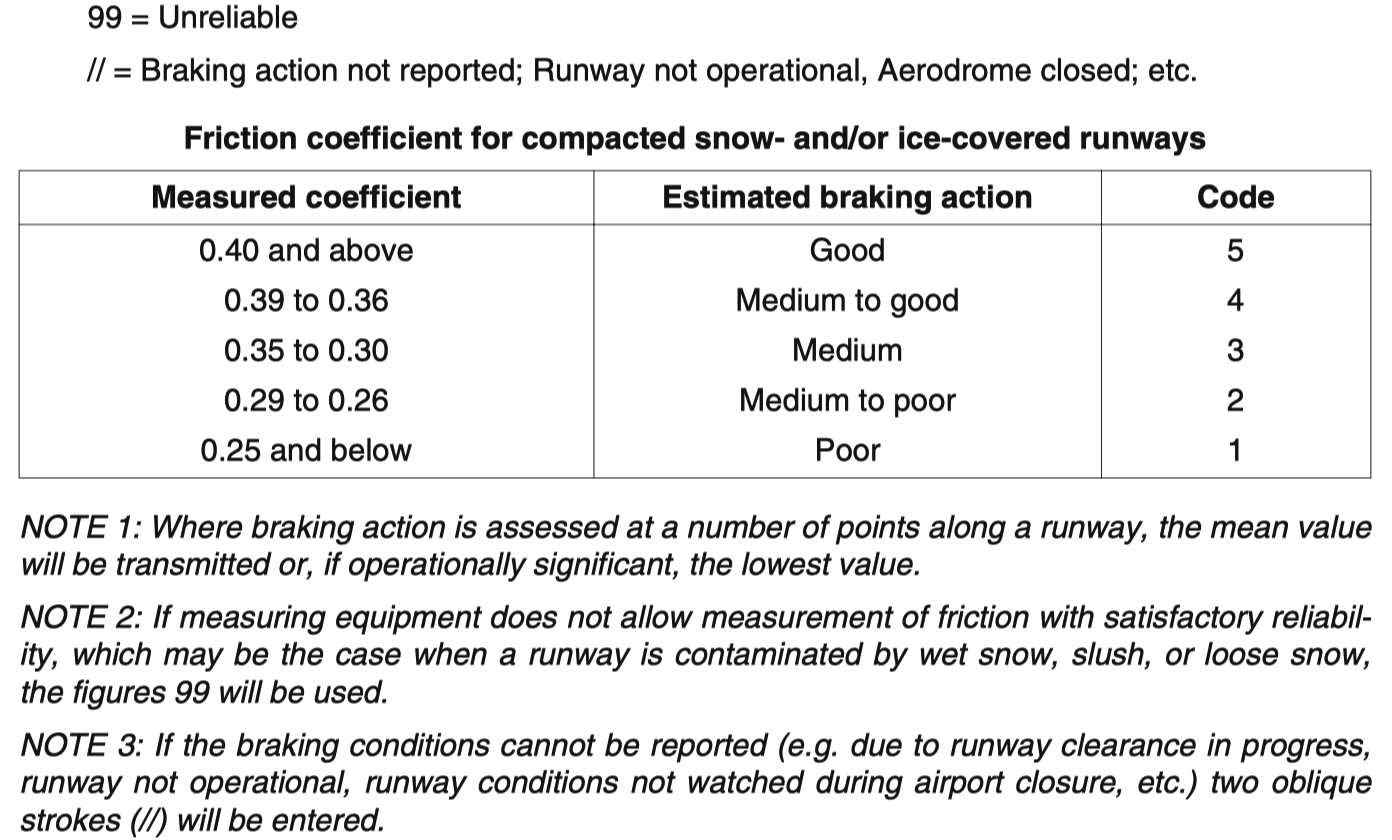 所以,不需要在理论上确认俄罗斯的代码是否与 GRF RWYCC 一致。报文中肯定有“道面条件”、“刹车效应”等信息,直接使用 RCAM 表对应出所需的刹车等级和 RWYCC 即可。