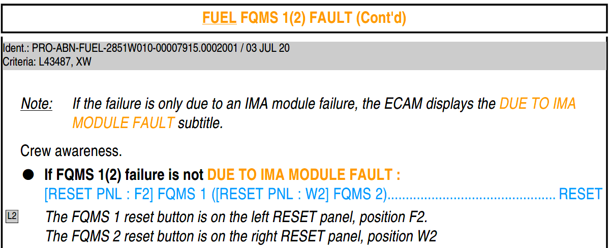 3. FUEL FQMS 1+2 FAULT 对应的不是 FQMS 1+2 RESET