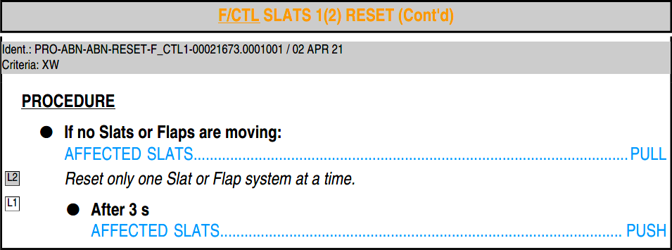 • F/CTL SLAT SYS 1+2 FAULT
