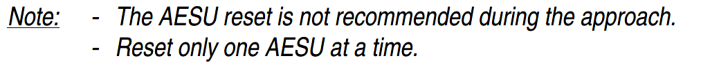 I also noted we should correct discrepancies on the wording of the SURV AESU reset (AESU 1+2 reset vs. AESU 1(2) reset). In the case of an AESU 1+2 FAULT, the crew should perform the reset of one AESU, and may then assess the possibility for another reset in accordance with the entries of the reset table.
