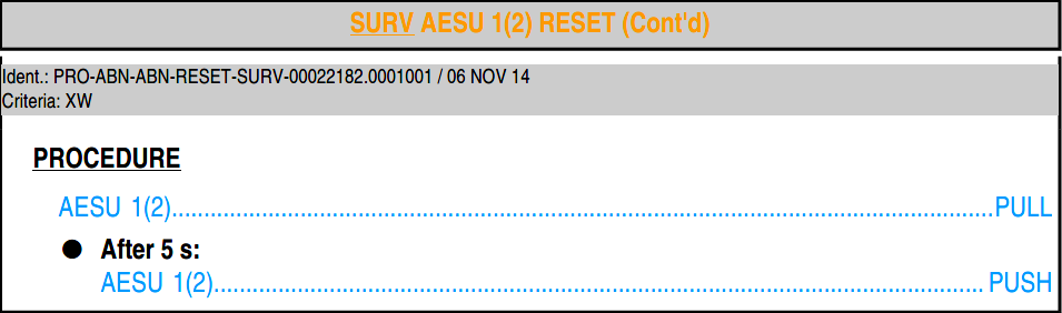 SURV AESU 1(2) RESET 虽然在程序中没有特别要求,但在程序前面的小字中,明确要求一次只能复位一个系统,这其实和通用要求是一致的: