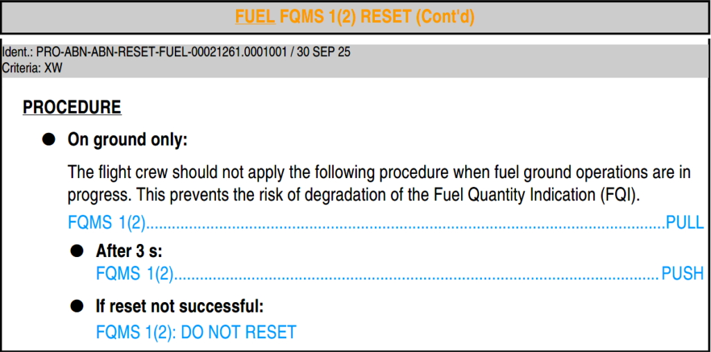 本文涉及的 TR 主要是今年咨询的 TR-81696582 Why FQMS 1+2 FAULT refer to FQMS 1(2) RESET 和 TR-81719665 Question about SYS RESET which are on ground only,以及 2022 年咨询的 TR-81096668 Can FQMS be reset in flight。有需求的可以自行在 AirbusWorld 查看完整内容。