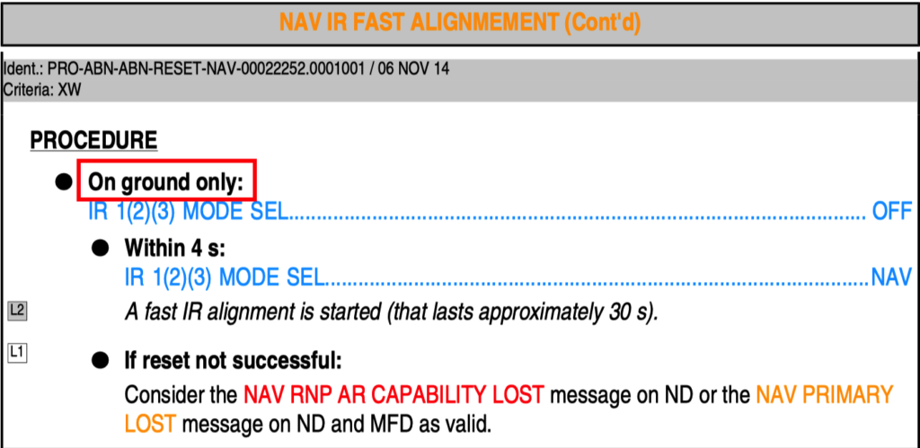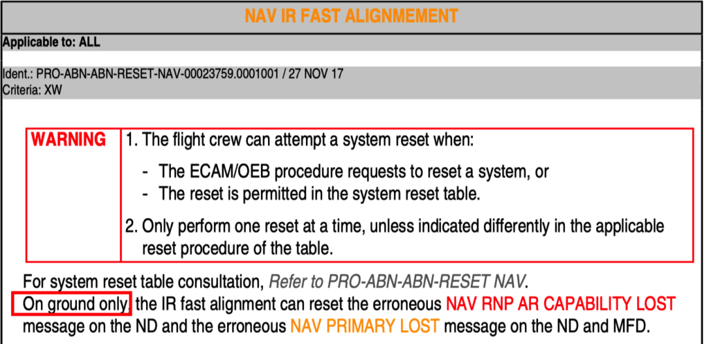 Therefore, this reset procedure is not applicable when the aircraft are in other phases i.e. during taxi or in flight.