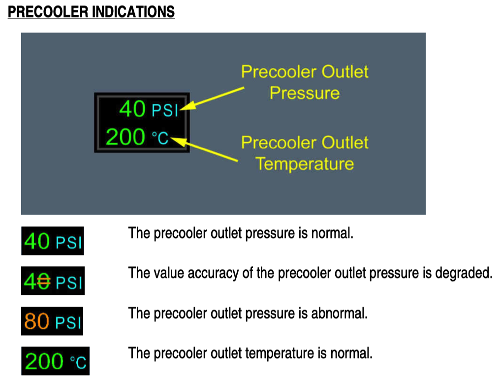 参考 FCOM DSC-36-20 C BLEED SD PAGE,可以看到这个页面上唯一的压力指示就是 Precooler 的压力: