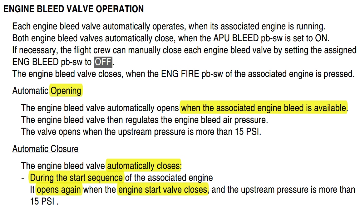 参考 DSC-36-10-20 A ENGINE BLEED AIR SYSTEM 和 FCOM DSC-36-10-20 A ENGINE BLEED VALVE OPERATION 可以看到,PRECOOLER 是在 Engine Bleed Valve 的下游,而这个活门在发动机起动期间是关闭的,只有在 Engine Start Valve 关闭之后才会打开: