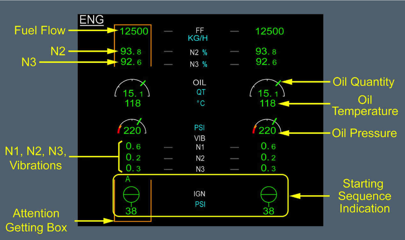 另一方面,在起动发动机的时候,ENG SD 页面也是有起动机进气压力显示的,参考 FCOM DSC-70-20 E ENG SD PAGE: